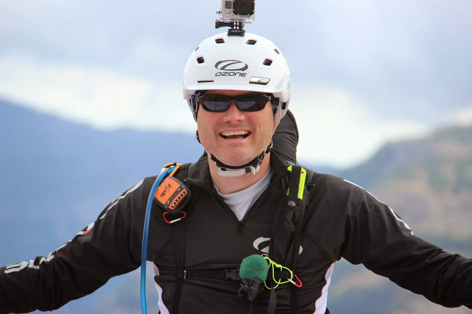 After an hour of Werner's best Michael Schumacher driving thru the mountains we made it, but I was a bit green from the ride. The hike up wasn't that bad, unless you are a fat, out of shape Alabama redneck. There was a gentle breeze at launch and our hopes of soars were decreasing. We had a good time fooling around, taking pics and enjoying the outdoors. Finally, Jackie and I launched and took the inevitable sled ride down. Just as I was landing I felt a bubble of lift but it was too little too late. But at least I flew!Jeff was coming in behind be and was a bit smarter. The LZ is actually on a terrance before dropping away to another 700 or feet to the valley floor. Jeff got over the lip of the terrance as was able to work some light lift before he landed. Werner did his usual Cuv imitation and caught a thermal and benched up the upper rider where he had stronger winds. Steve worked his way more east and was staying up, but starching. Wasn't long before both of them joined us in the LZ.