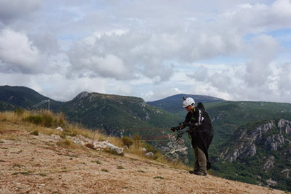 We awoke Tuesday to a forecast of a Mistral wind. A Mistral is a local phenomena to southern France & Provence. It is a strong, cold dry wind from the NW, that is caused when there is a high over the Bay of Biscay and a low over the Gulf of Genoa in the Med. The wind funnels down the long, thinning Rhone river valley that acts as a venturi. Top speeds of up to 90KM have been recorded.Given the conditions, we were looking for lower elevation sites that would be shaded from the strong winds. Luckily Werner knows the area well and suggested we hit Greoliers, about hour to the south. Greoliers is a hike up site and is south facing and usually a good ridge soaring site as the sea breeze from the Med moves north.