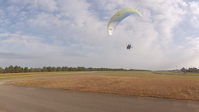 I gotta tell ya, I sure have been spoiled flying Ozone gliders the past 8 years. His glider is supposed to be on the better launching motor wings but it was a chore to launch. It's heavy, hard to launch, the risers are huge and the controls clunky. I think Curtis enjoyed the Geo 4 also.